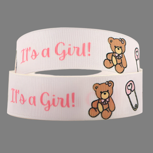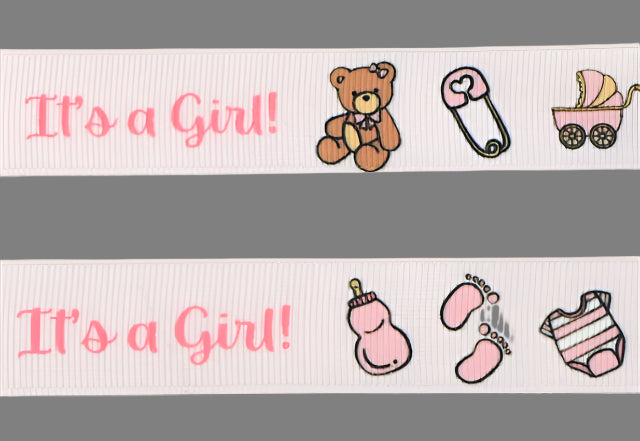 This blue grosgrain ribbon is perfect for your baby shower decorations. Made of high-quality material, it features a charming "It's A Girl" print, adding a special touch to your celebration. The soft texture and delicate design make it ideal for wrapping gifts, creating bows, and more. Show off your excitement in style with this adorable baby ribbon.
