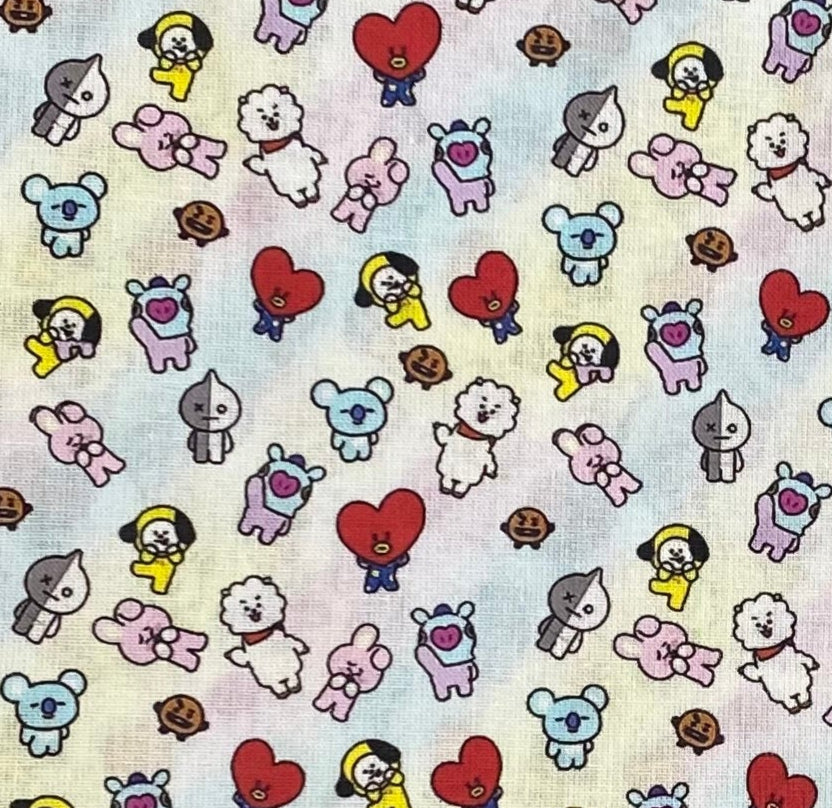 This BT21-inspired fabric features all your favorite characters—Mang, Koya, Cooky, Chimmy, Tata, RJ, and Shooky. Bright and playful, it’s perfect for adding a fun, colorful vibe to your crafts and projects.