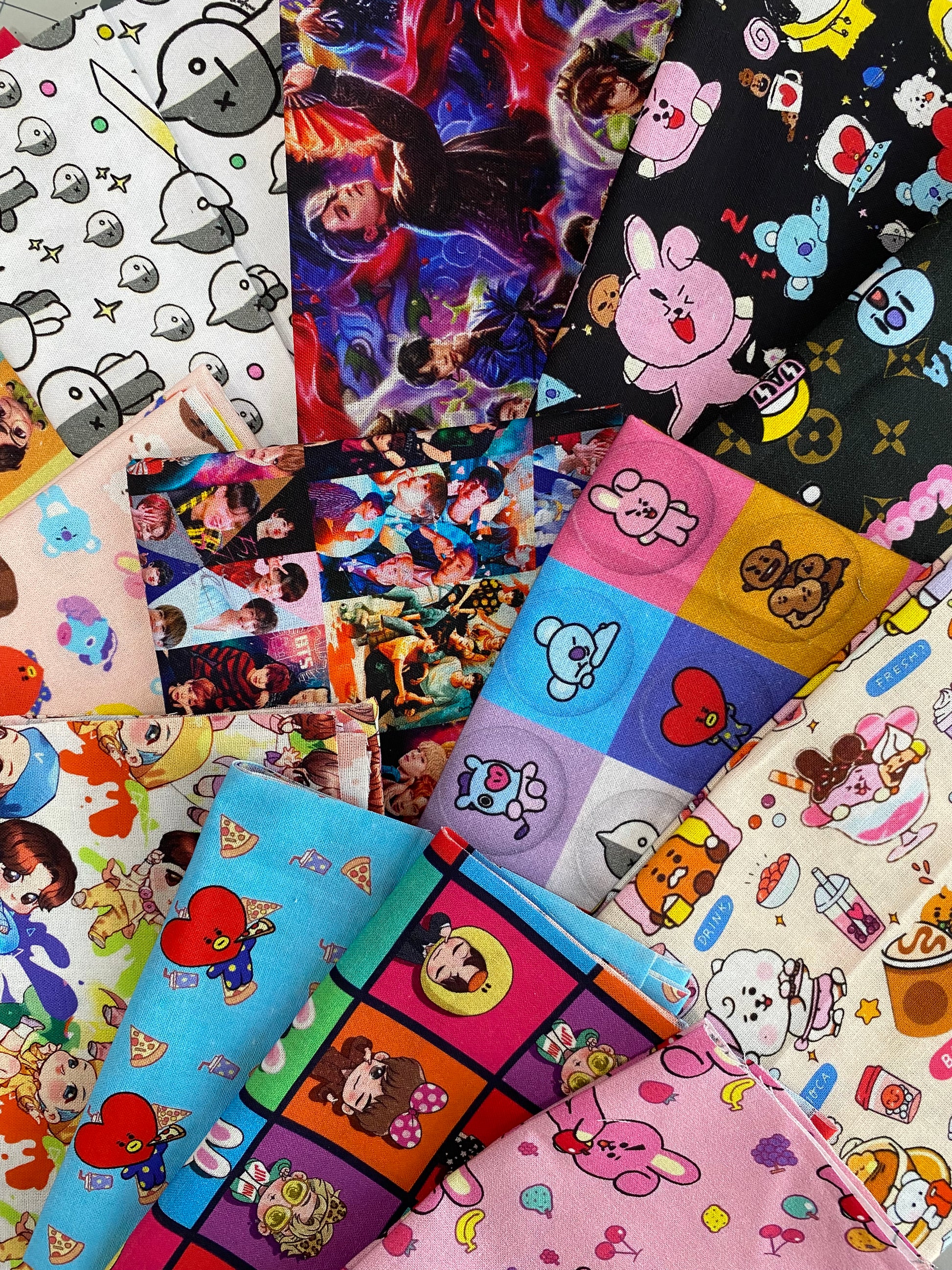Discover your creativity with the BTS KPOP Fabric Bundle! This bundle features BTS and BT21 characters that will add a touch of Kpop energy to all your sewing projects. With unique designs, you'll have endless possibilities for your next masterpiece. Unleash your inner artist and let the BT21 characters inspire you!