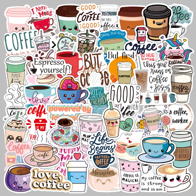 Add a cute touch to your coffee time with these adorable water resistant stickers. This 50 pack set is perfect for adding some personality to your laptop, water bottle, or journal. Perfect for the coffee lover in your life.