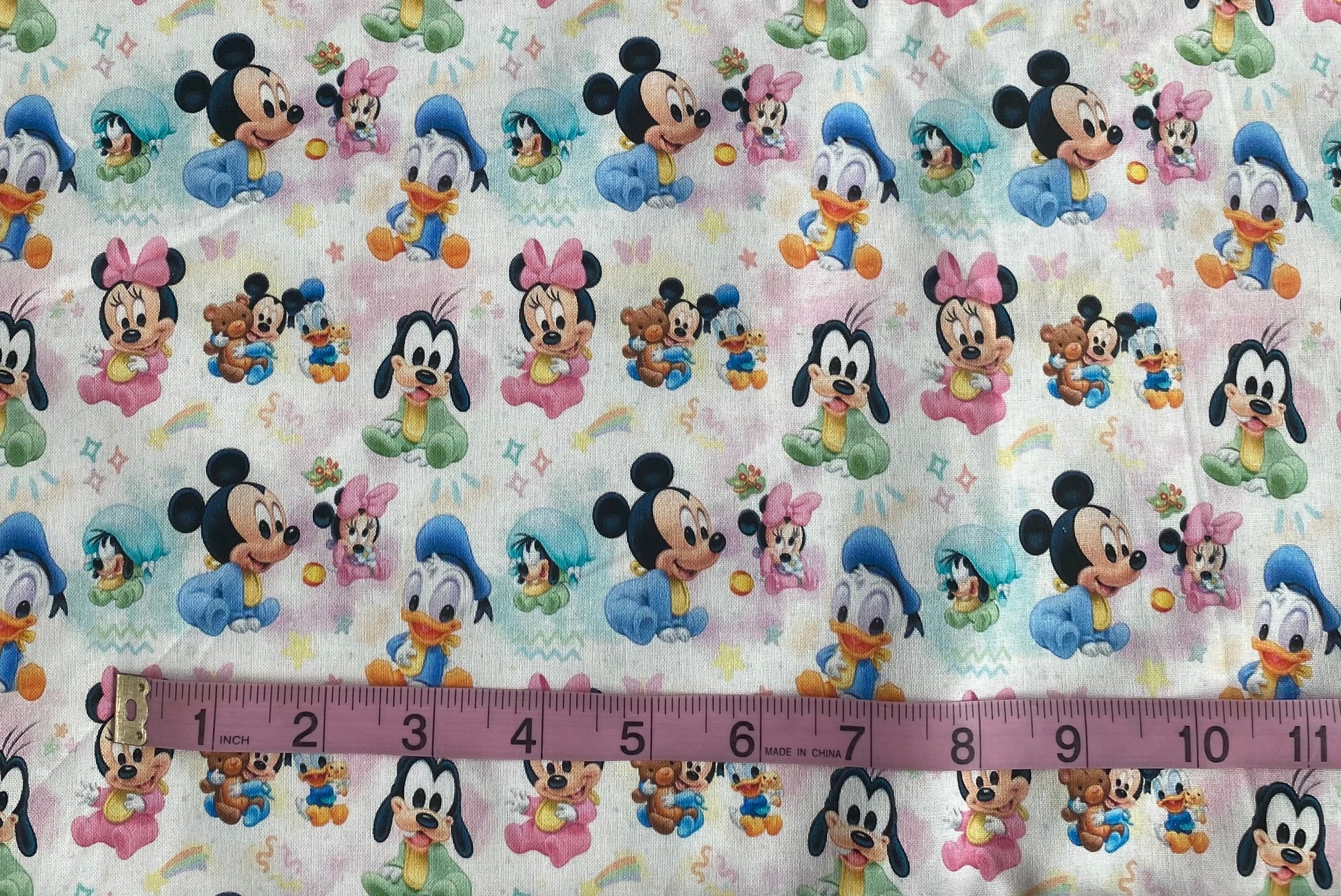 Experience the magic of Disney with our 100% cotton fabric featuring beloved characters like Mickey, Minnie, Goofy, Donald, Pluto, and Daisy as adorable babies. Soft and durable, this fabric is perfect for all your sewing and crafting needs. Bring your projects to life with the cuteness of Disney Babies Fabric.