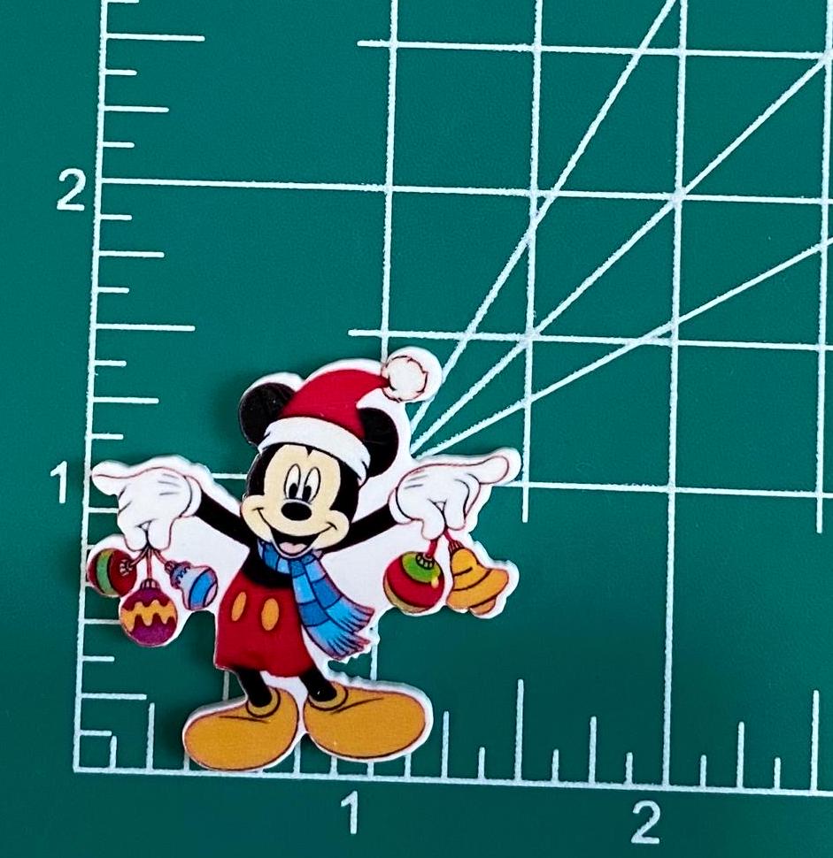 Add some festivity to your holiday crafts with these Disney Christmas Flat Back Planar Resin pieces featuring the iconic Mickey Mouse. Made from durable resin, each piece is intricately designed for a festive touch. Perfect for scrapbooking, handmade cards, and more.
