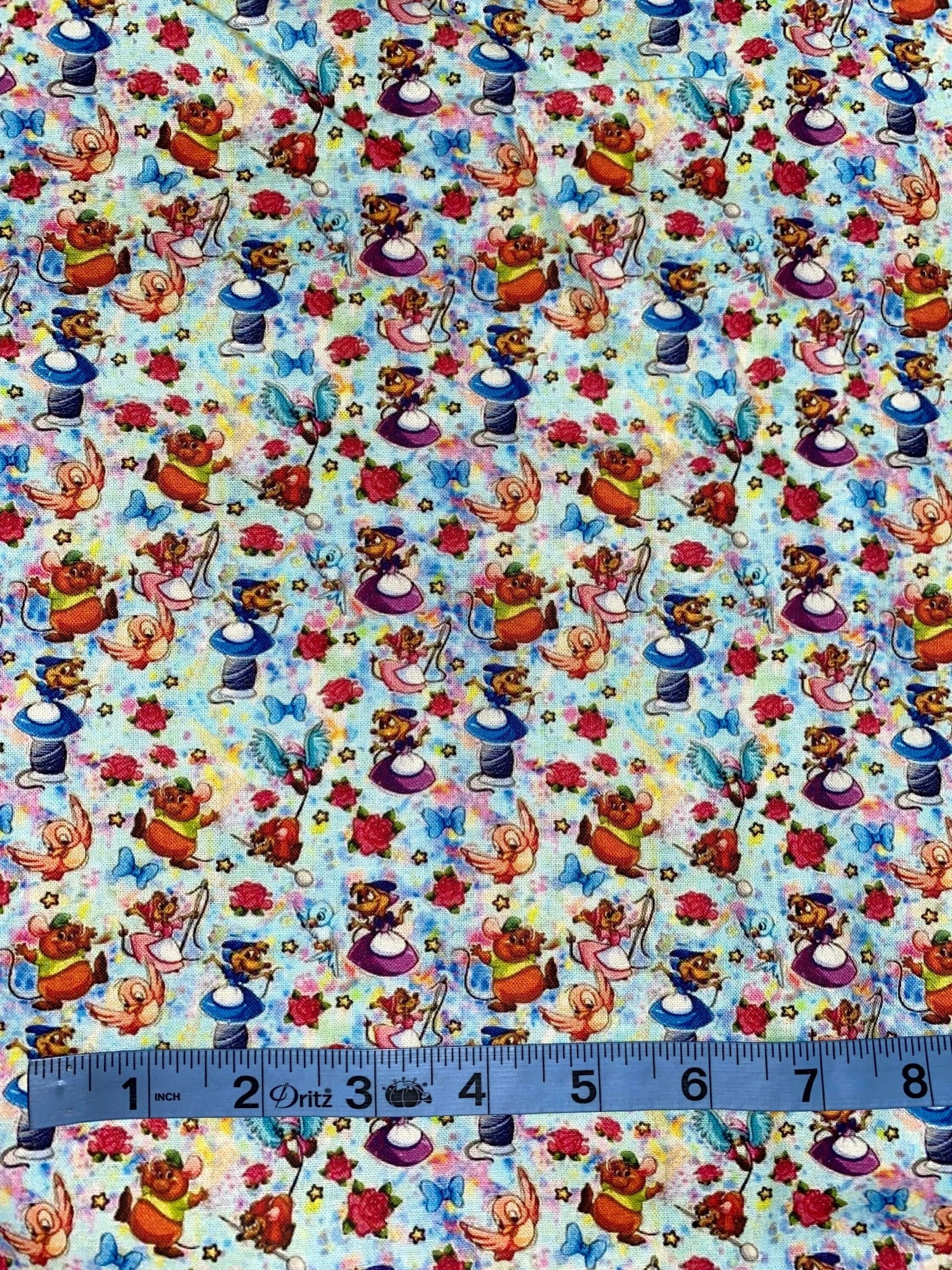 This 100% cotton fabric, featuring the iconic mice from Disney's Cinderella, is perfect for any craft or sewing project. With its durable and high-quality material, you can create beautiful and long-lasting pieces. Add a touch of magic to your creations with this charming fabric.
