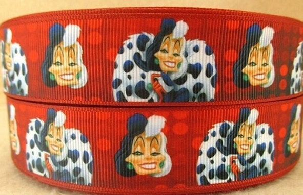 Enhance your next crafting project with our Disney Cruella Ribbon. This high-quality 1" Grosgrain ribbon features an intricate design inspired by the iconic Disney villain, Cruella De Vil. Perfect for adding a touch of personality and style to any project. Add this to your ribbon collection today!