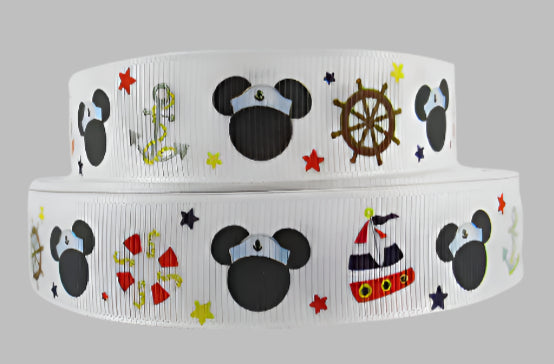 This grosgrain ribbon from Disney Cruise Line showcases the iconic Sailor Mickey Mouse Icon with nautical designs of a ship's wheel, anchor, and boat. Perfect for adding a touch of magic to any project or outfit. Channel your inner sailor with this unique and charming ribbon.