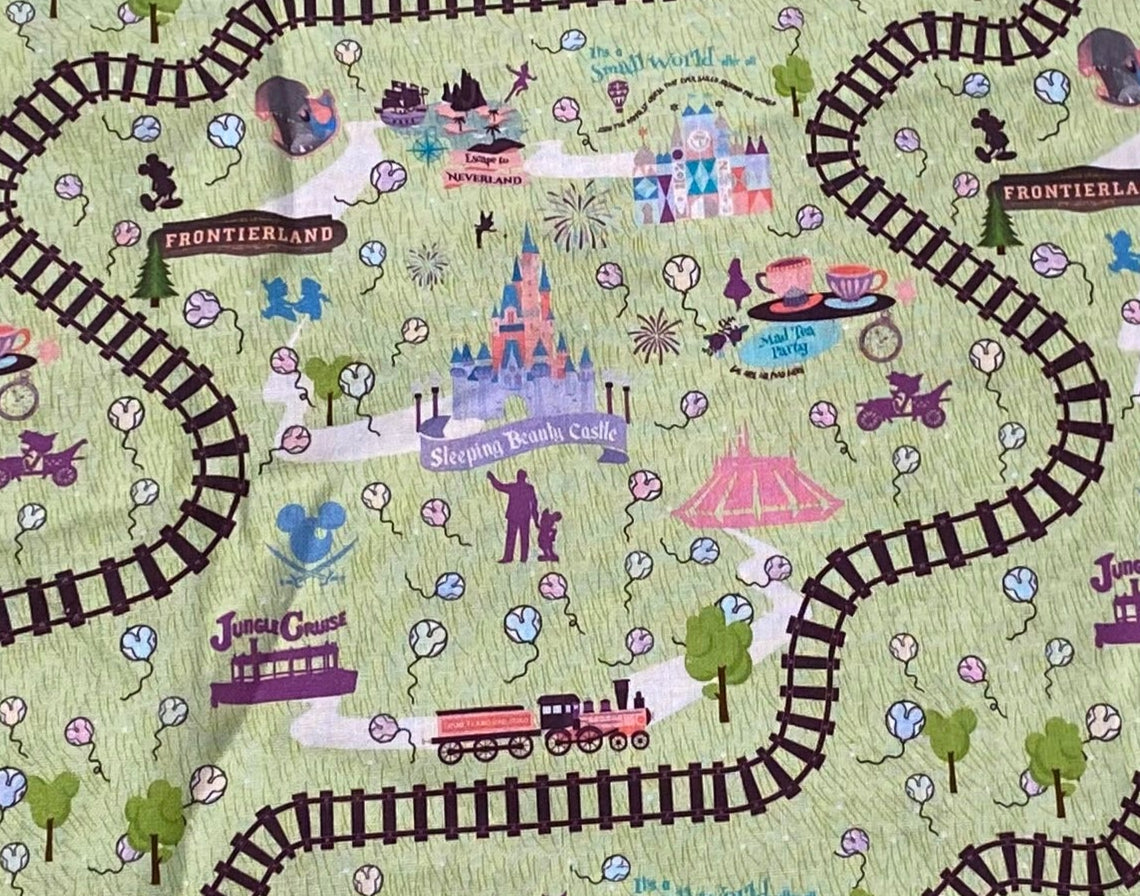 Discover the magic of Disney with our 100% cotton fabric featuring the map of the Disneyland Magic Kingdom. Perfect for creating unique, nostalgic projects with a touch of nostalgia. Let your imagination run wild with this iconic design.