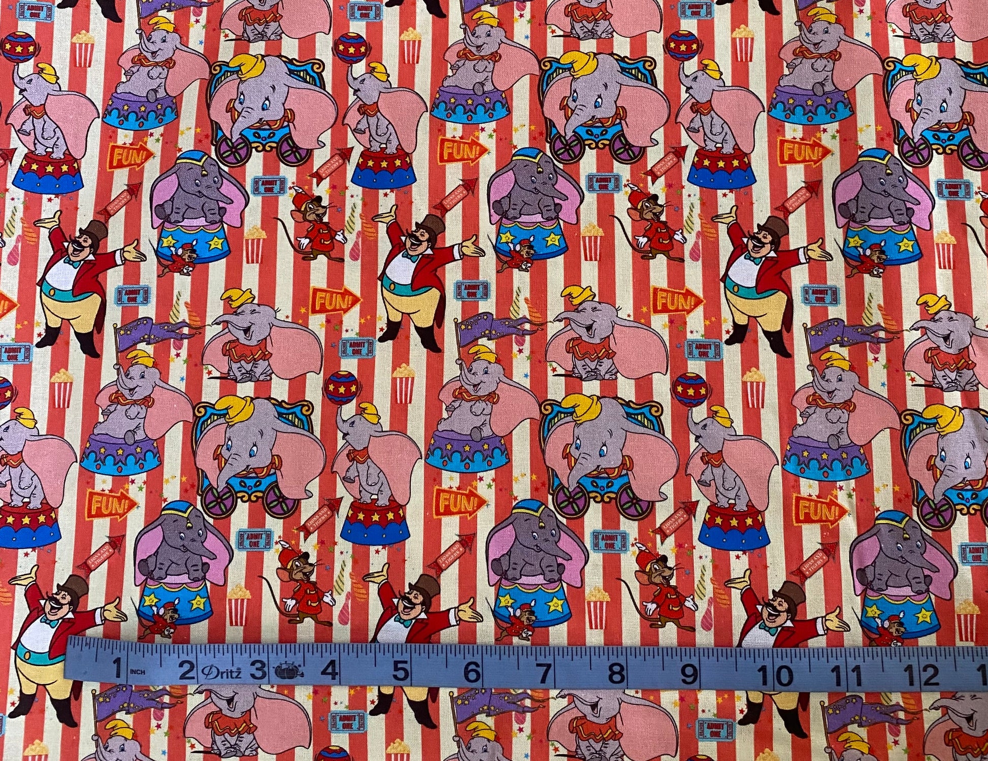 Made from 100% cotton, this Disney Dumbo fabric is perfect for any crafting project. With a soft texture and durable material, it will bring joy and nostalgia to any project, making it a must-have for fans of the beloved flying elephant.