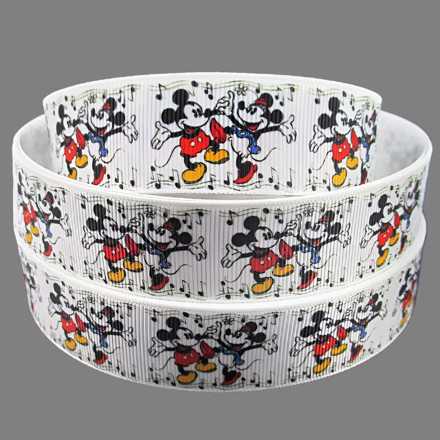 This Disney Grosgrain Ribbon features iconic images of Mickey and Minnie Mouse. Made with high-quality grosgrain material, this ribbon is perfect for crafts, gifts, and decorations. Add a touch of nostalgia and whimsy to your projects with this charming ribbon.