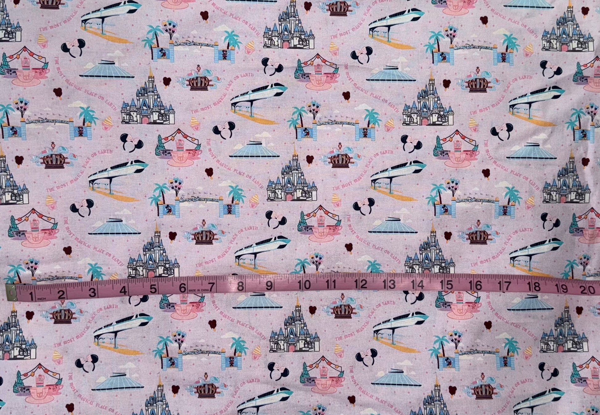 Bring the magic of Disney Parks home with this enchanting fabric collection. Featuring iconic attractions including the thrilling Monorail, whimsical Teacup Ride, and futuristic Space Mountain, this design captures the wonder and excitement of your favorite theme park experiences. Perfect for quilting, apparel, home décor, and craft projects. Let your imagination soar with every stitch.