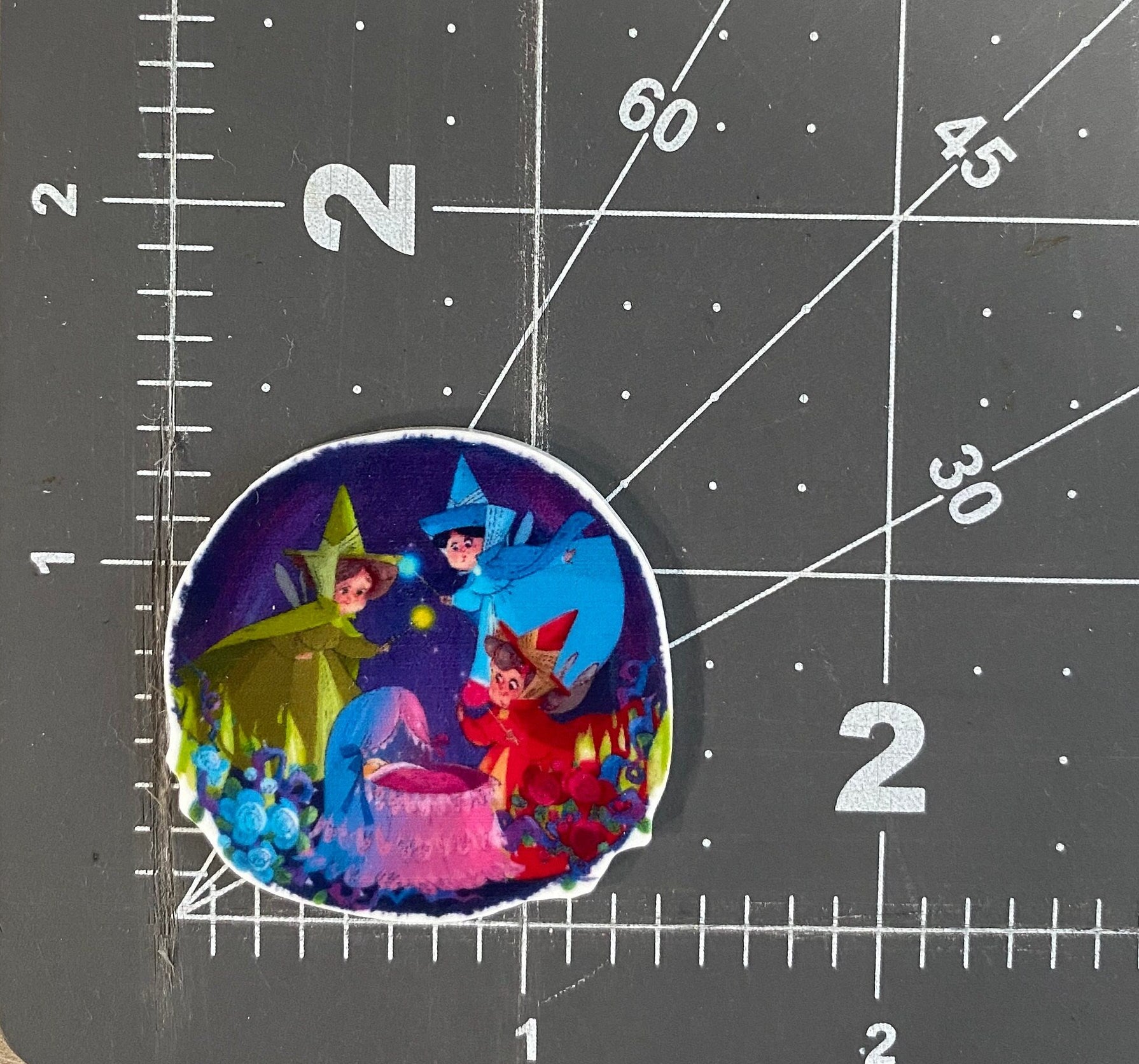 Capture the magic of Disney’s Sleeping Beauty with this charming flat back planar resin featuring Flora, Fauna, and Merryweather. Perfect for crafts and decorations, these three fairies bring a touch of enchantment to any project.
