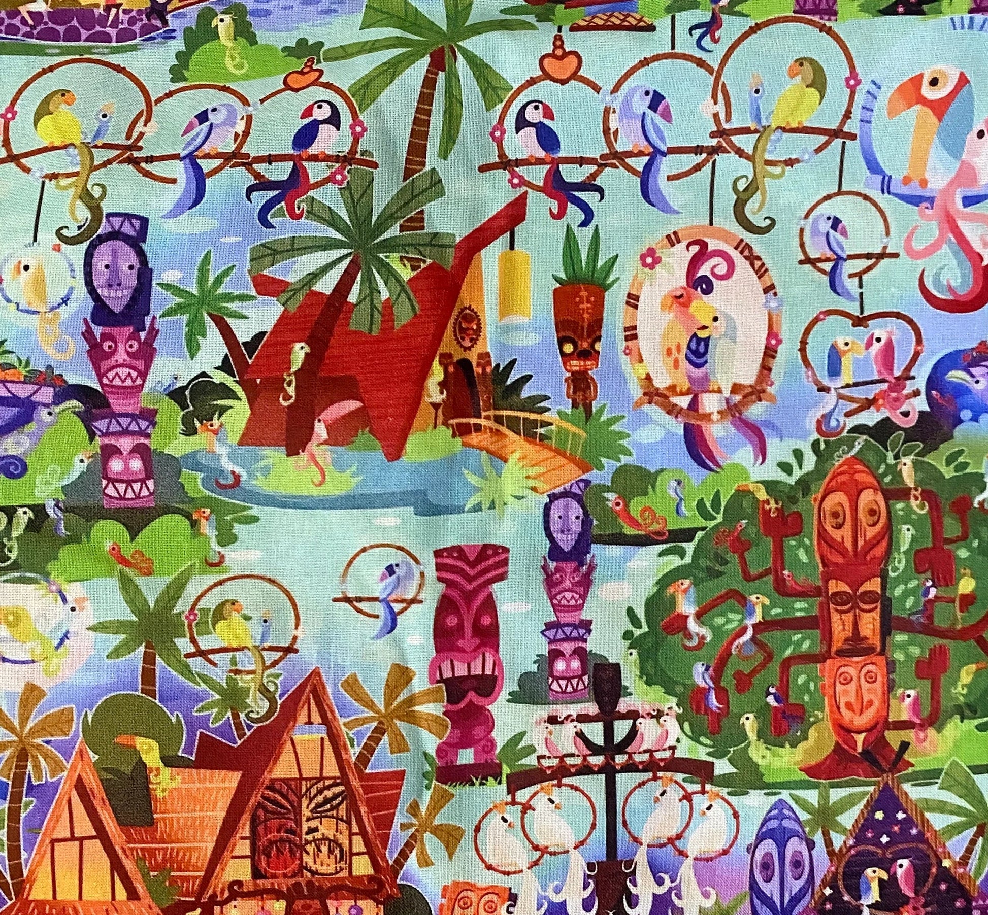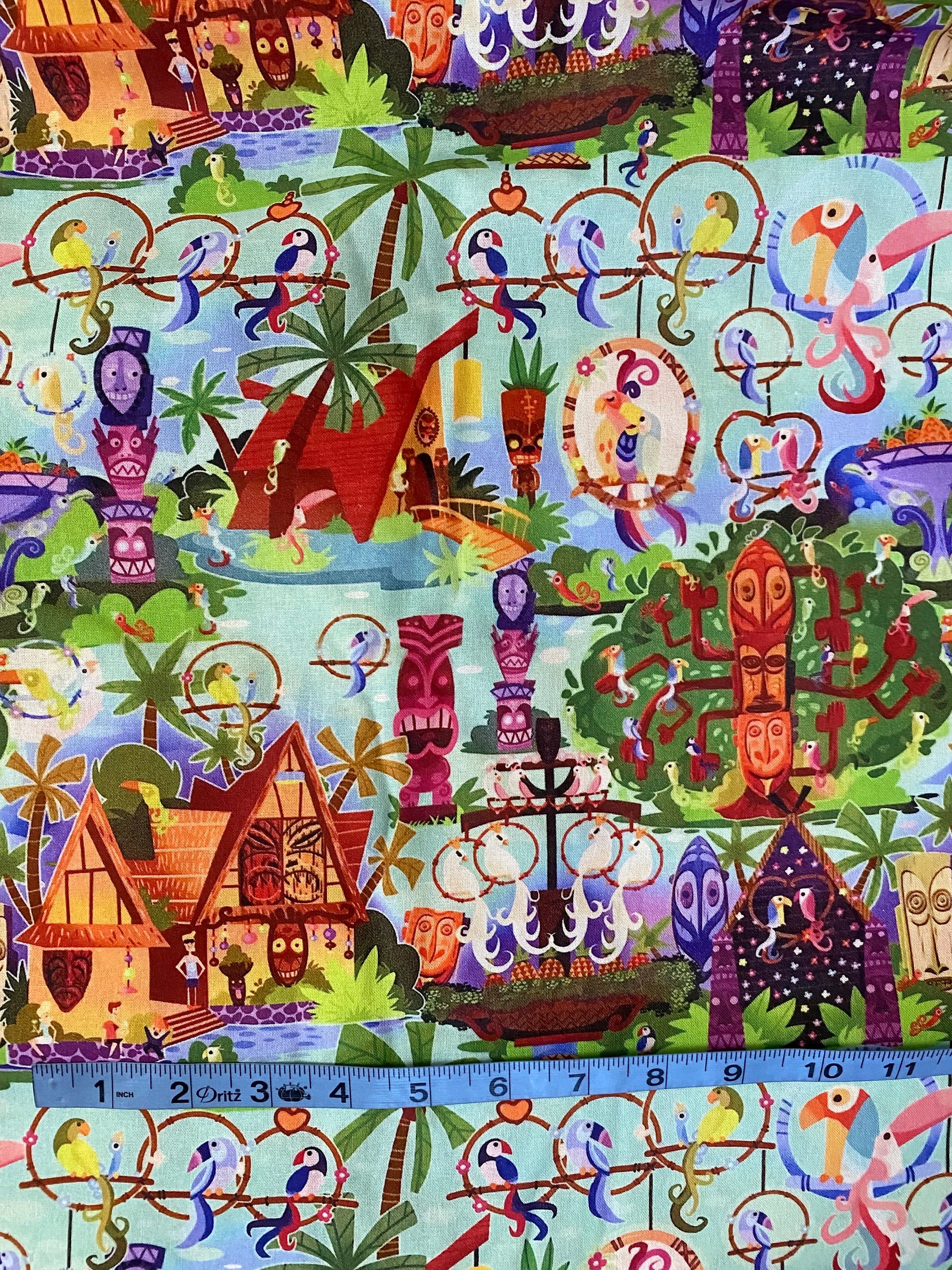 Experience the magic of Adventureland with Disney's Tiki Room Fabric. This durable and high-quality fabric brings the iconic attraction to life in any DIY project. Perfect for creating themed home decor, costumes, and more. Bring the enchanting spirit of the Tiki Room into your own home with this must-have fabric.