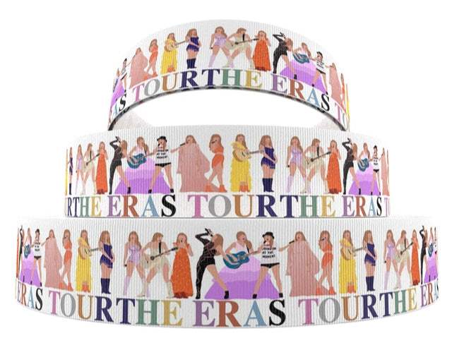 Celebrate your love for Taylor Swift with this exclusive grosgrain ribbon from her Eras Tour. Perfect for crafting, decorating, or adding a touch of pop culture to any project. Show your fandom in style with this high-quality ribbon featuring unique Taylor Swift designs.